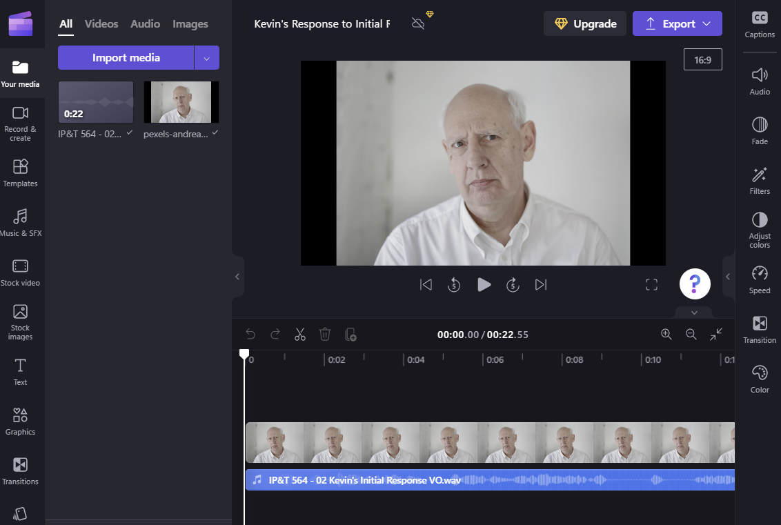 I used Clipchamp plus recordings from the media team to create short audio clips