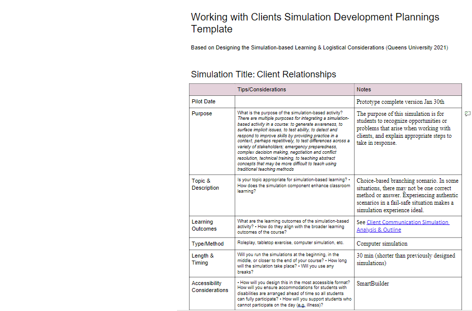 - Situated the simulation within the larger course, so each simulation connects with content and activities before and after to support learning.